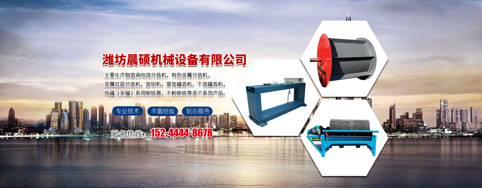 主要生產(chǎn)制造渦電流分選機(jī)、有色金屬分選機(jī)、金屬垃圾分選機(jī)、選鋁機(jī)、濕選磁選機(jī)、干選磁選機(jī)、電磁(永磁)系列除鐵器、干粉除鐵等多個系列產(chǎn)品。